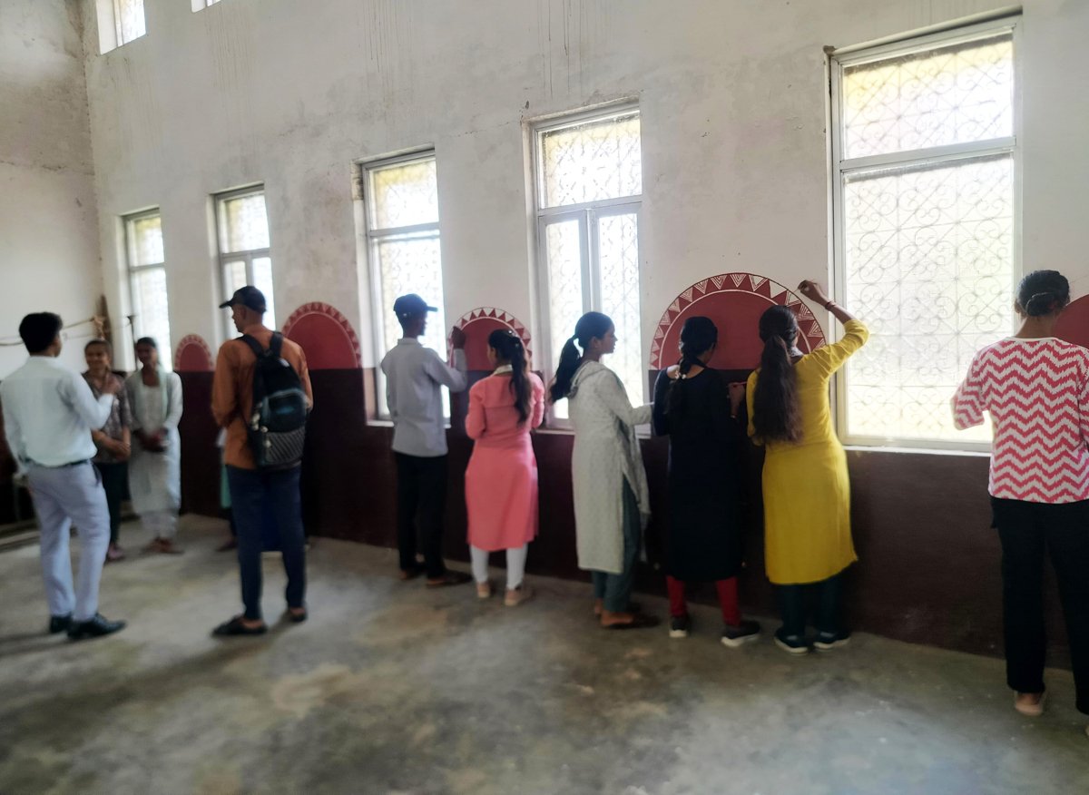 आज दिनांक- 01 जुलाई 2025 को गाॅंधी शताब्दी स्मारक स्नातकोत्तर महाविद्यालय, कोयलसा आजमगढ़ में "रमाशंकर सिंह सेवा ट्रस्ट" के संयुक्त तत्वावधान में आयोजित सृजन "लोक चित्रकला कार्यशाला" में महाविद्यालय के छात्र व छात्राओं ने भारत की सांस्कृतिक विरासत को इस कार्यक्रम की विशेषज्ञ प्रो.जूही शुक्ला जी के मार्गदर्शन एवं डॉ. राम कुमार मौर्य (भूगोल विभाग), के निर्देशन में दिवाल चित्रकारिता को बड़े ही उत्साह पूर्वक प्रस्तुत किया, तथा सभी छात्र व छात्राओं को लोक चित्रकला कार्यशाला का प्रमाण -पत्र भी वितरित किया गया। इस कार्यक्रम में डॉ. स्वस्तिक सिंह प्राचार्य, डा. अर्चना सिंह जी, डॉ.तृप्ति सिंह, डॉ. नासरीन आरा, डॉ.शकुंतला मिश्रा, एवं कविता पटेल जी आदि सभी सम्मानित जन उपस्थित थे।