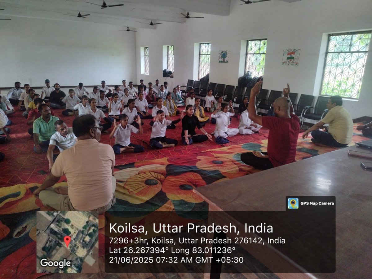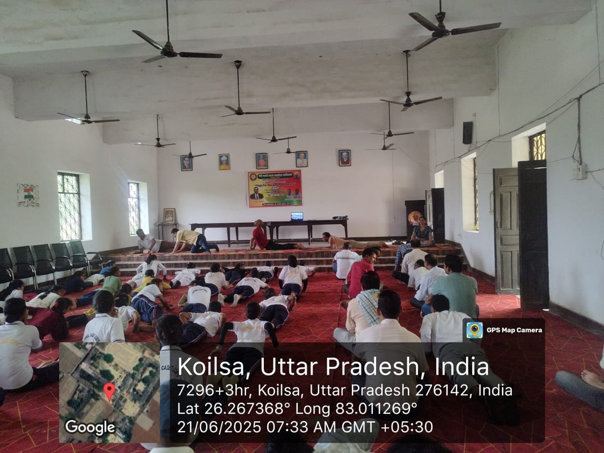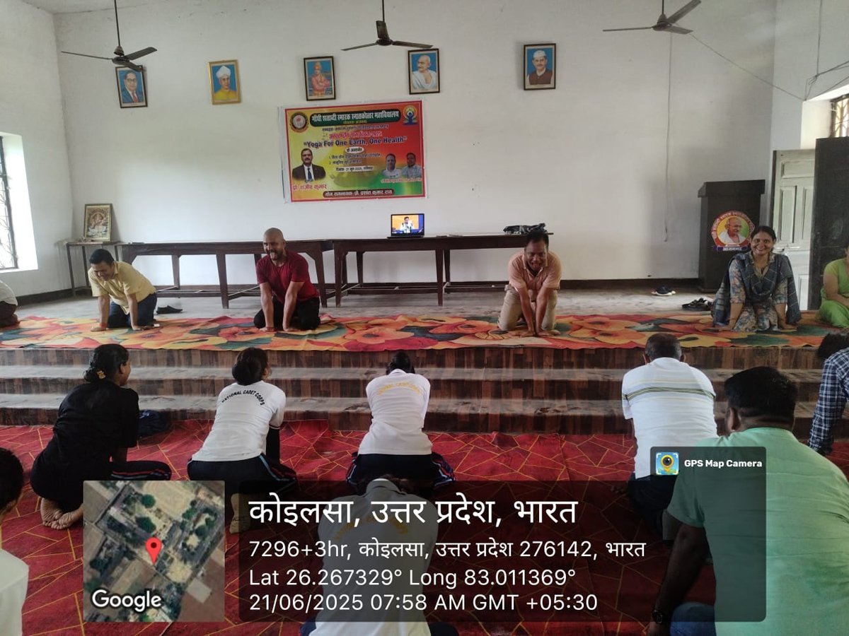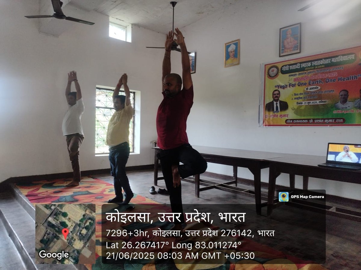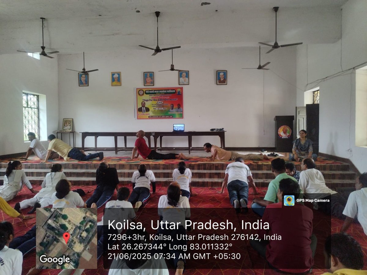 आज दिनांक 21 जून 2025 को गाँधी शताब्दी स्मारक स्नातकोत्तर महाविद्यालय कोयलसा आजमगढ़ के प्रांगण में अन्तर्राष्ट्रीय योग दिवस के अवसर पर सुबह 07:00 बजे से योग शिविर का आयोजन किया गया जिसमें प्रशिक्षक के रूप में श्री अमित सिंह जी नें अपना योगदान दिया , इस शिविर में महाविद्यालय के प्राचार्य डॉ स्वस्तिक सिंह, डॉ धीरेन्द्र कुमार गुप्ता, डॉ अनुराग मिश्र, डॉ दुष्यन्त त्रिपाठी, डॉ धीरेन्द्र मिश्र, डॉ संदीप कुमार, डॉ संजय पटेल, डॉ साधना राय, डॉ संजना, डॉ संगीता मिश्रा, डॉ सोनी, श्री दिनेश पाण्डेय, श्री गणेश प्रसाद एवं समस्त स्टाफगण एवं छात्र-छात्राएं उपस्थित रहें ।