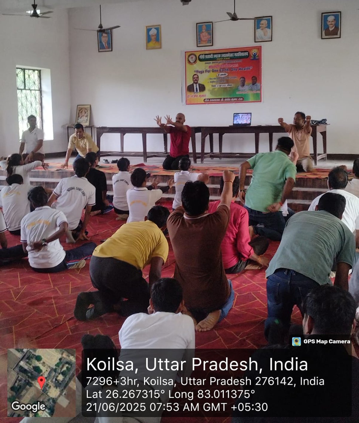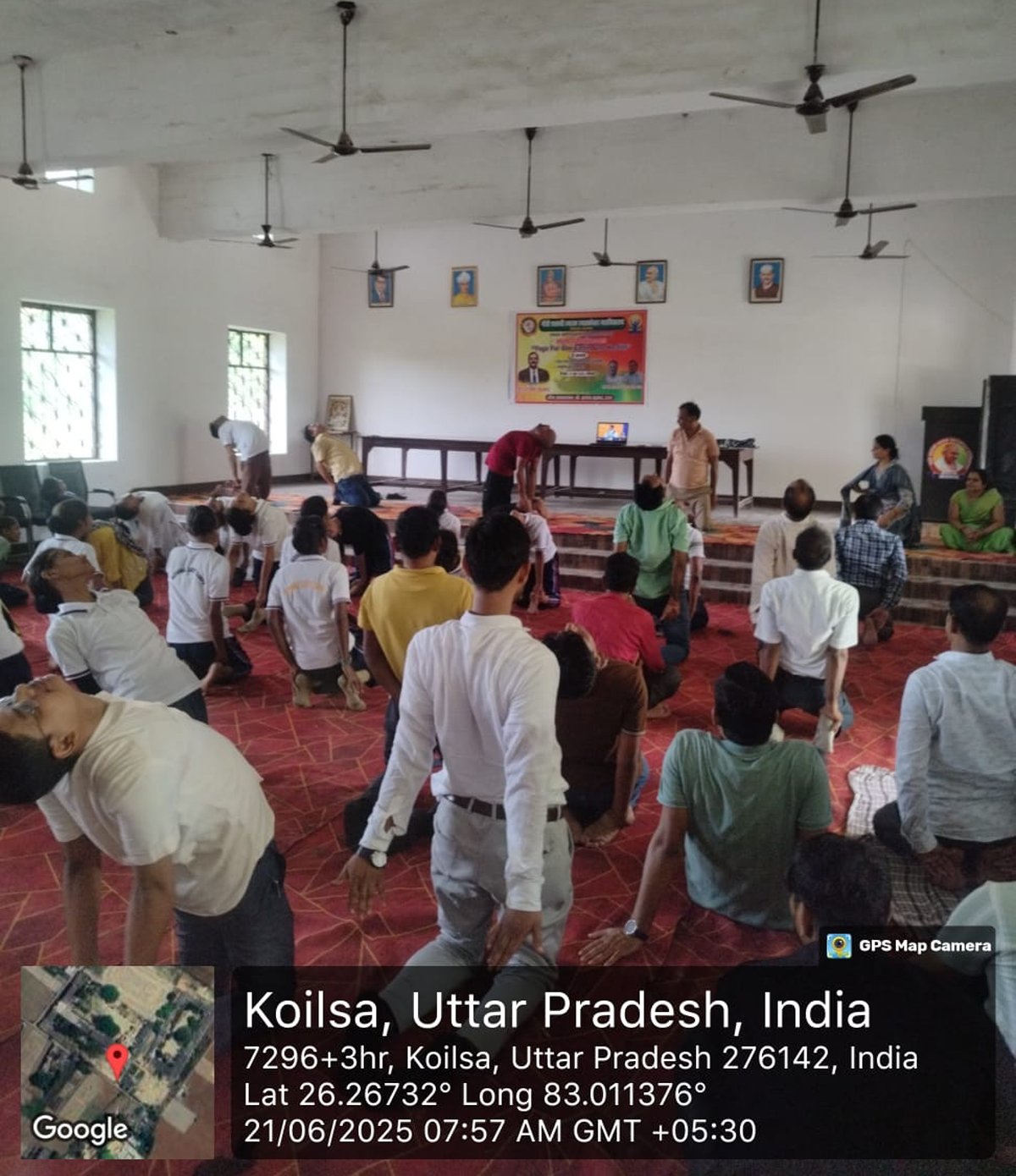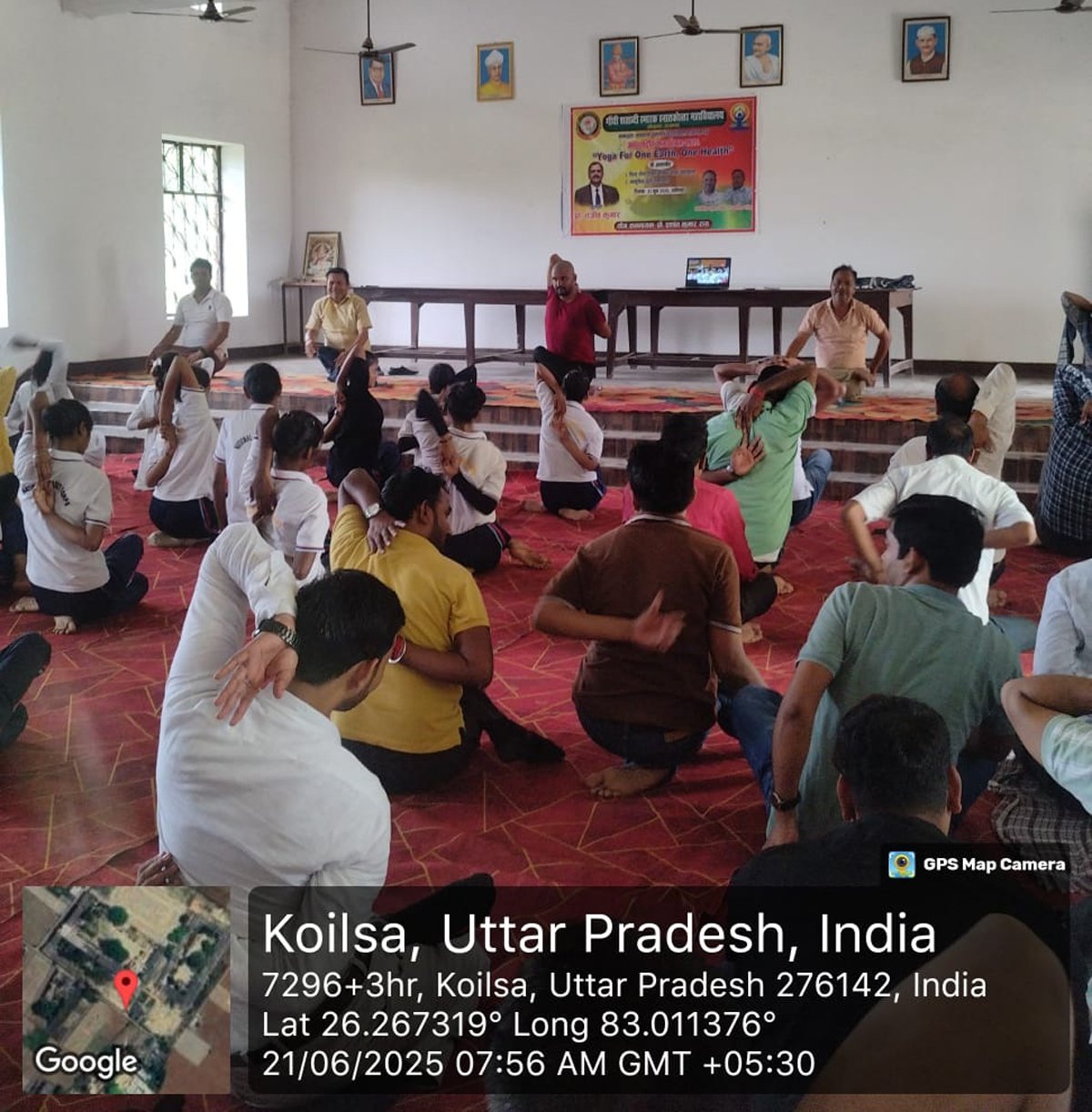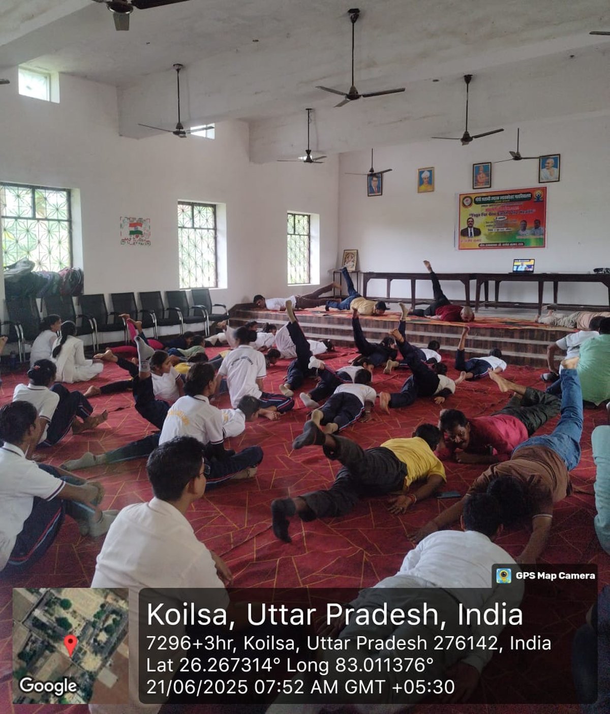 आज दिनांक 21 जून 2025 को गाँधी शताब्दी स्मारक स्नातकोत्तर महाविद्यालय कोयलसा आजमगढ़ के प्रांगण में अन्तर्राष्ट्रीय योग दिवस के अवसर पर सुबह 07:00 बजे से योग शिविर का आयोजन किया गया जिसमें प्रशिक्षक के रूप में श्री अमित सिंह जी नें अपना योगदान दिया , इस शिविर में महाविद्यालय के प्राचार्य डॉ स्वस्तिक सिंह, डॉ धीरेन्द्र कुमार गुप्ता, डॉ अनुराग मिश्र, डॉ दुष्यन्त त्रिपाठी, डॉ धीरेन्द्र मिश्र, डॉ संदीप कुमार, डॉ संजय पटेल, डॉ साधना राय, डॉ संजना, डॉ संगीता मिश्रा, डॉ सोनी, श्री दिनेश पाण्डेय, श्री गणेश प्रसाद एवं समस्त स्टाफगण एवं छात्र-छात्राएं उपस्थित रहें ।